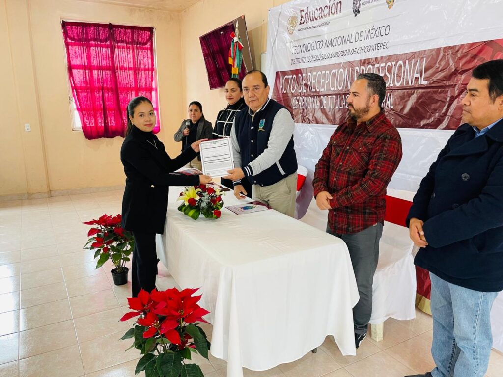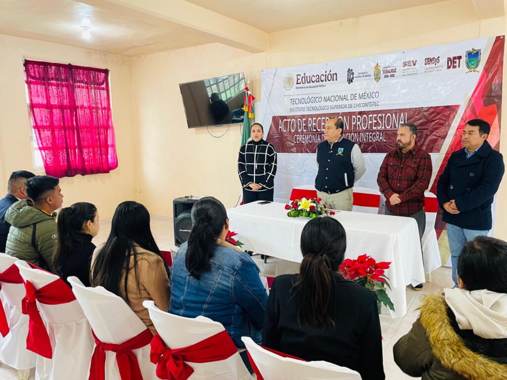 El director del Instituto Tecnológico Superior de Chicontepec Ing. Orlando Mar Ochoa, realizó la entrega de siete títulos profesionales a jóvenes egresados de las carreras de Ingeniería en Gestión Empresarial, Ingeniería en Sistemas Computacionales y Desarrollo Comunitario, en un acto académico llevado a cabo en la Unidad Académica Huayacocotla.